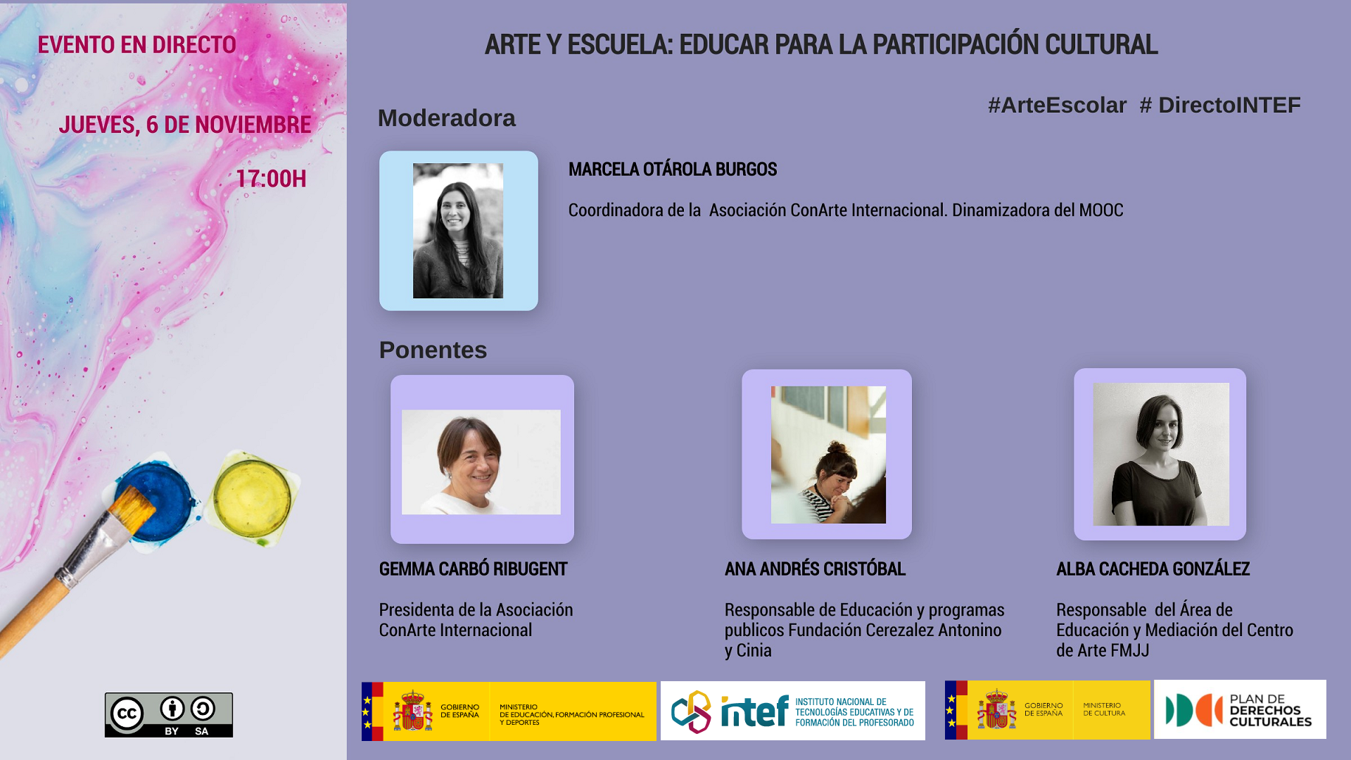 También esta semana hemos podido asistir al webinar del MOOC, donde hemos conversado con Alba Cacheda, responsable del Área de Educación y Mediación del Centro de Arte de la Fundación María José Jove y Ana Andrés, responsable de Educación y Programas públicos Fundación Cerezales Antonino y Cinia.